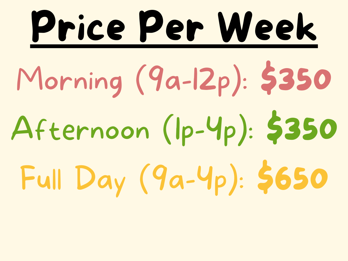 Campers are responsible to bring snacks and water for Morning and Afternoon sessions.
