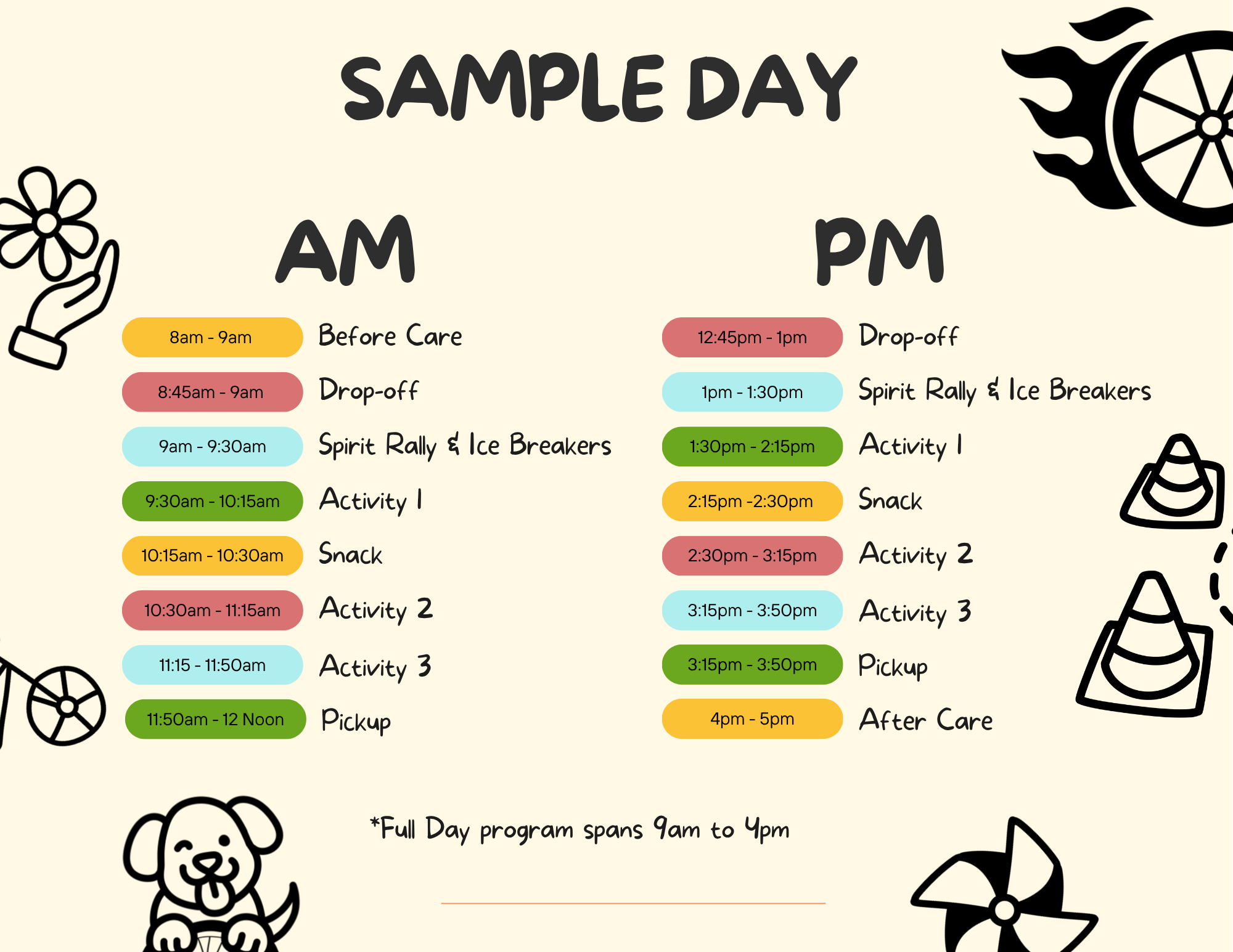 Training wheels and balance bikes welcome. Ages 4-6. Pedal Pups aim to transition to pedal bikes during their week at camp.